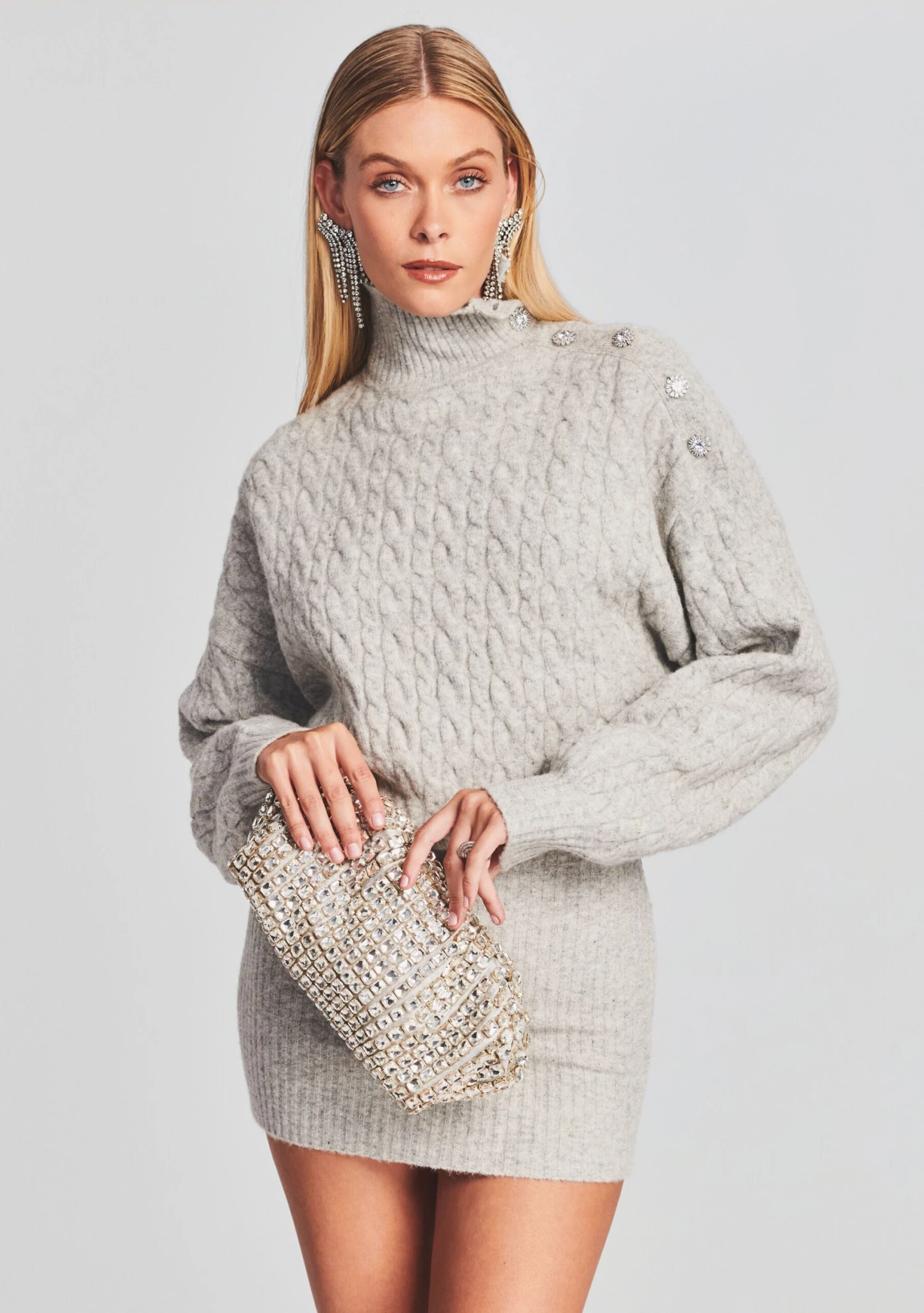 Shine through the night with our Daphnis Crystal Bag. This pouch clutch is covered in oversized crystal embellishments and is the perfect size for an evening out—fitting all the essentials, no more, no less. Shown here in Silver.
