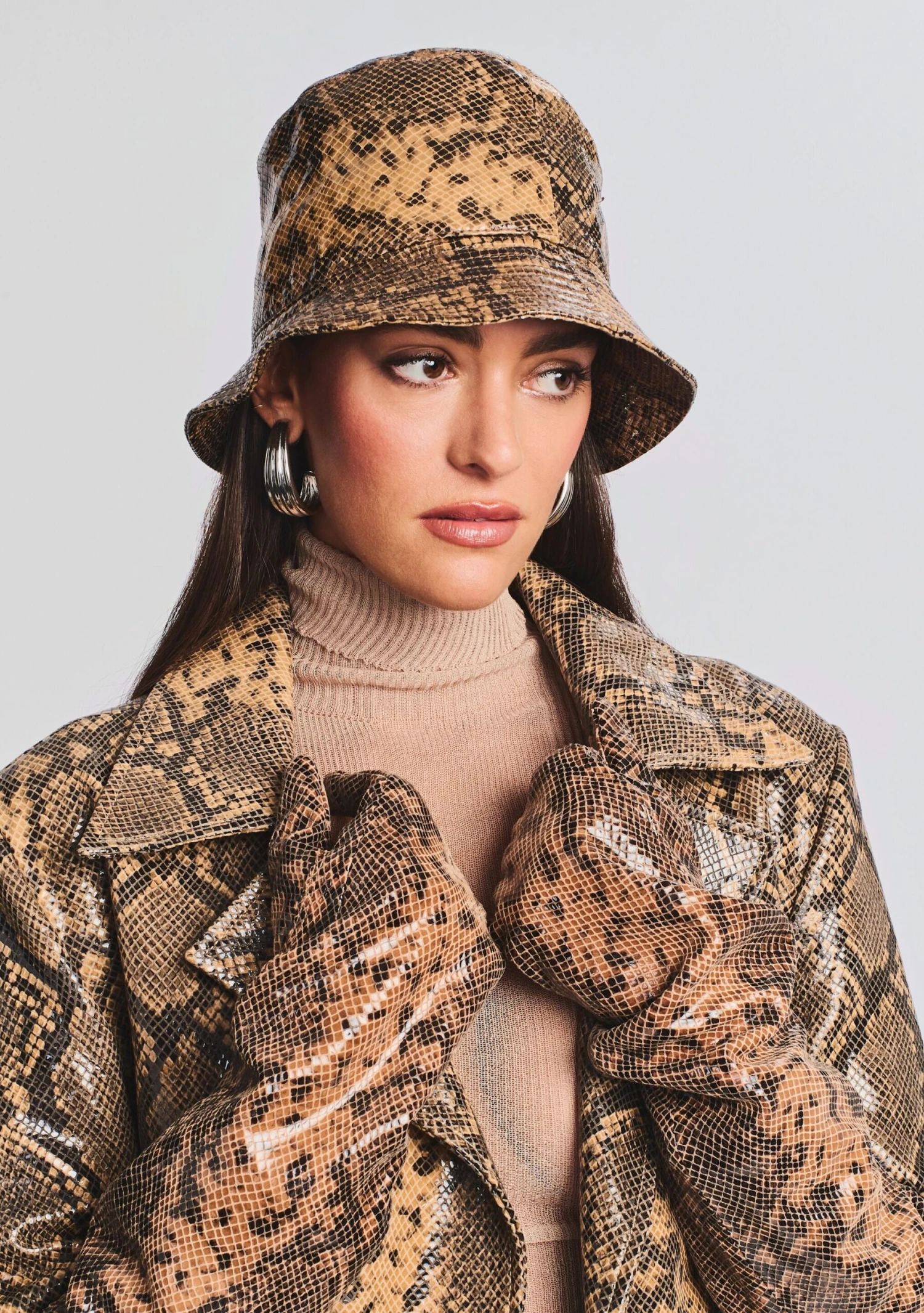 Combine luxury and fashion with our Yanni Leather Gloves. These gloves seamlessly blend the exotic allure of snake skin leather with timeless elegance. Shown here in Tannin Snake.